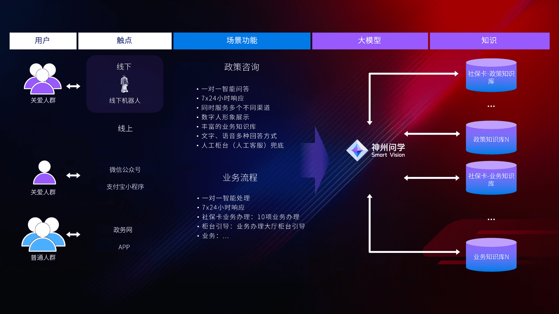 • 线上线下全覆盖:线上提供微信公众号、、支付宝小程序、、政务网、、、、app多种渠道,,,与线下机器人形成完整服务体系。。。。